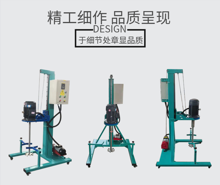 小型简易分散机变频调速,电动升降,可以任意移动,可以选择220V380v的电源。1.5KW.2.2KW.3KW各种规格、运转稳定有力,适合各种低粘度液体,升降旋转自如,适应各种位置;***可靠,操作维护简单;生产连续性强,对物料可进行快速分散和溶解,分散效果好,生产效率高,运转平稳,安装简便。针对不同物料的粘度及处理量有不同的功率及型号。